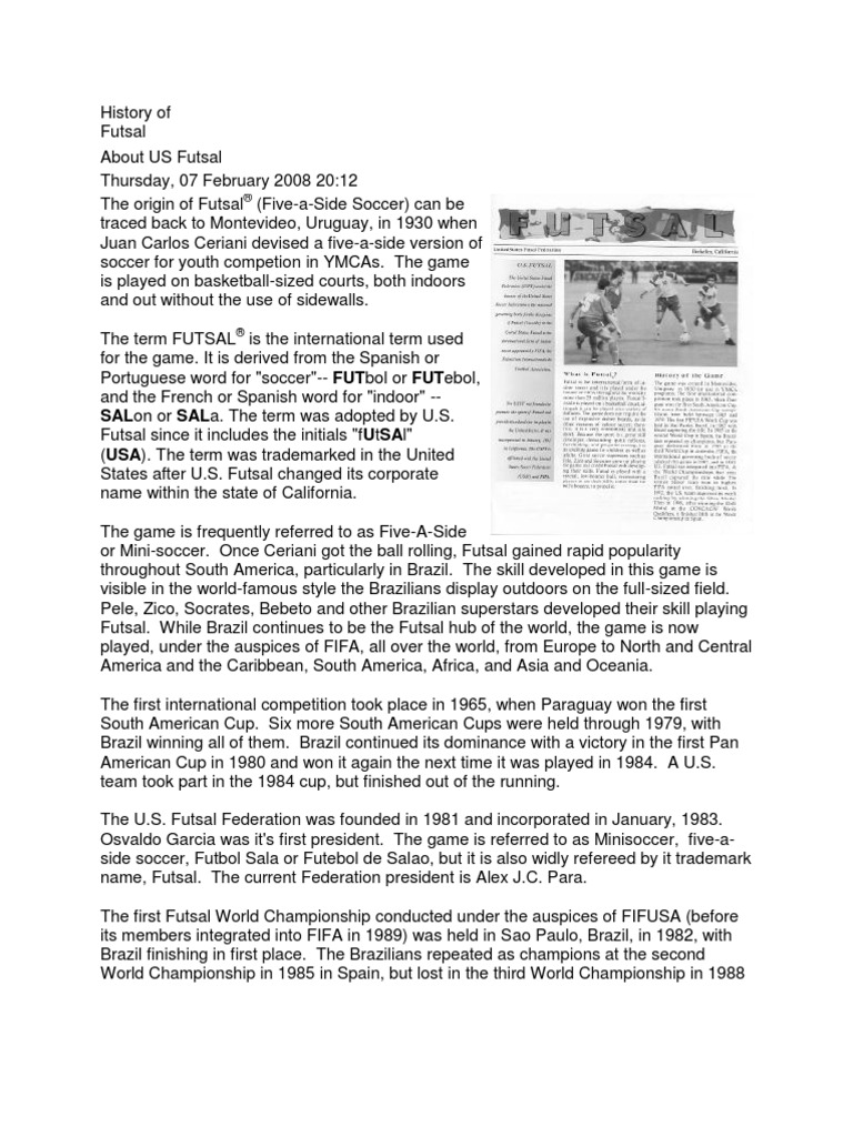 History Of Futsal Pdf Teams Sports Rules And Regulations
